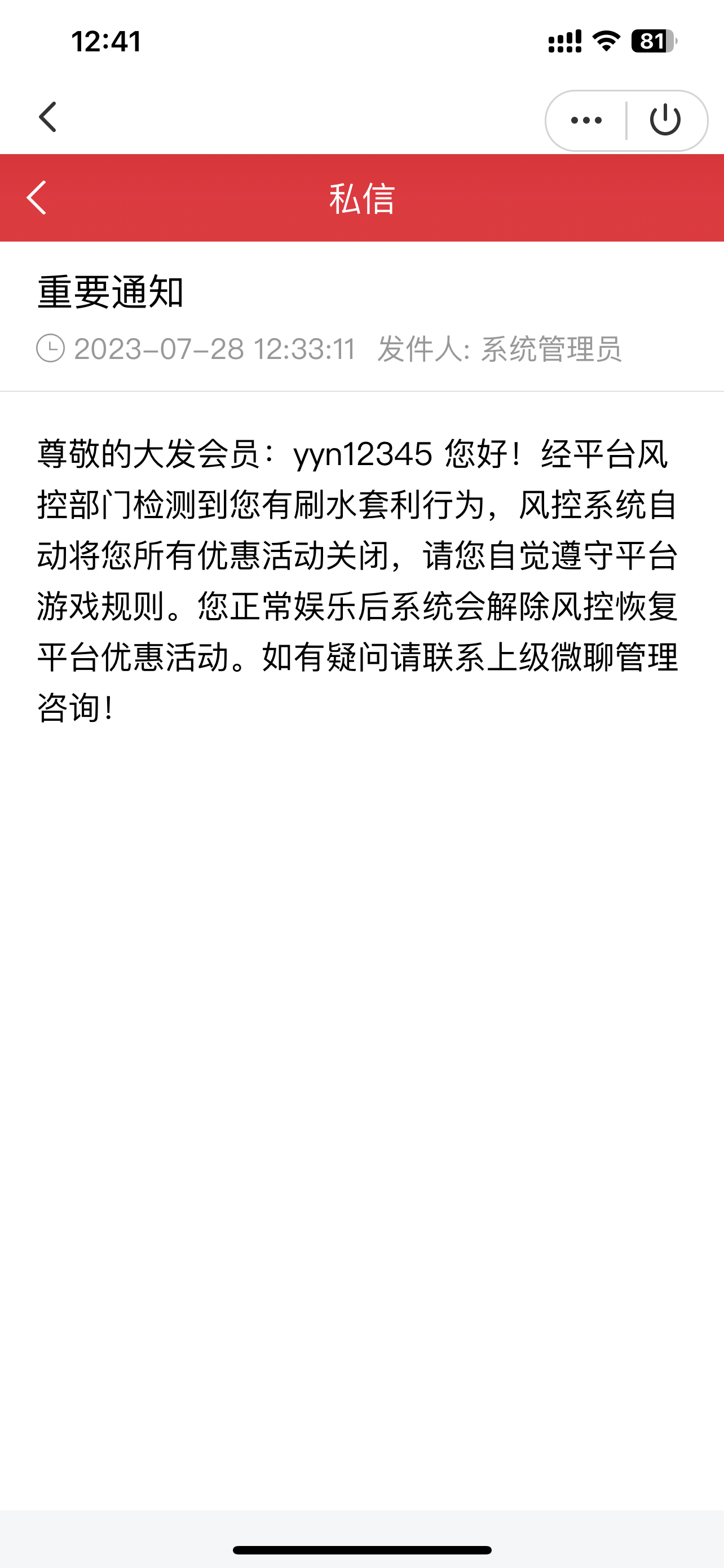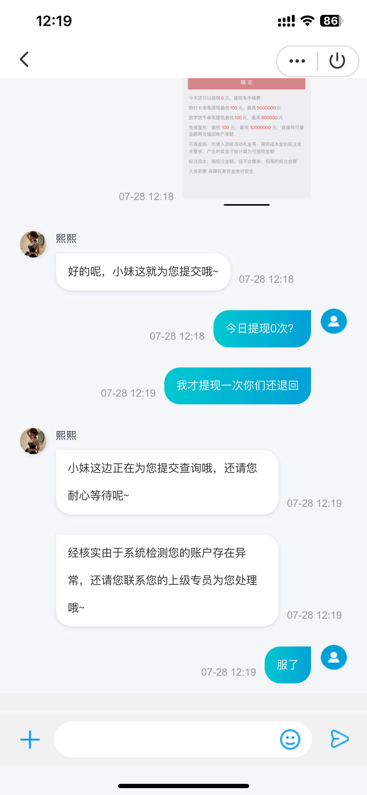 黑平台电话特邀充值100送58后期68 88 108 高额彩金诈骗充值了提现就说你刷水套利大家避雷