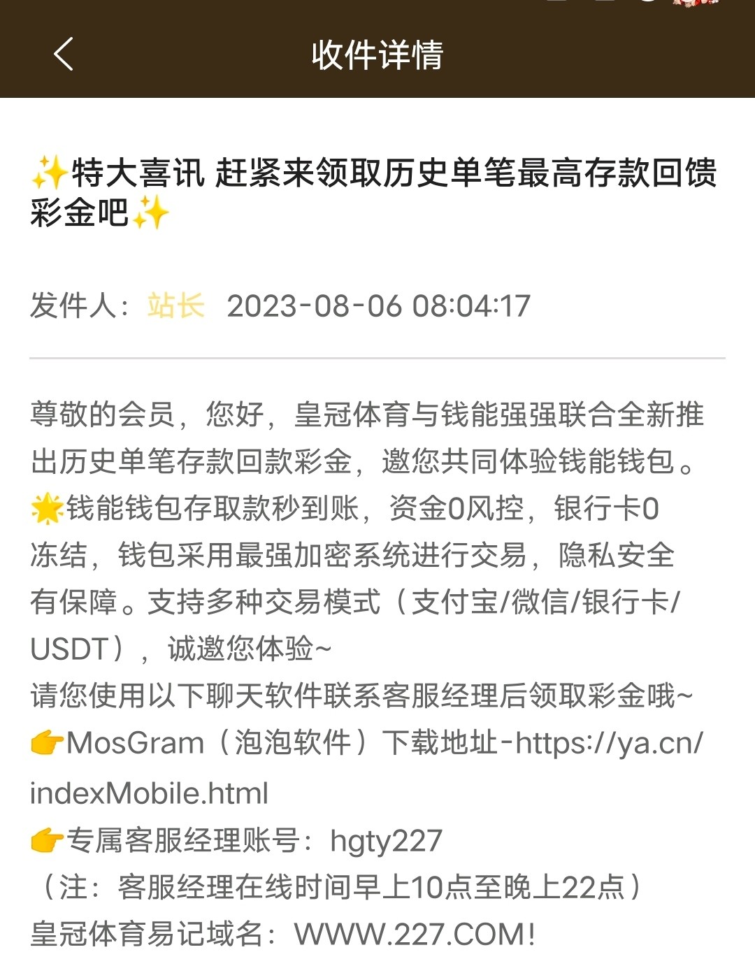 哪位老哥有玩彩 大发的站内信截图发一下 谢谢老哥