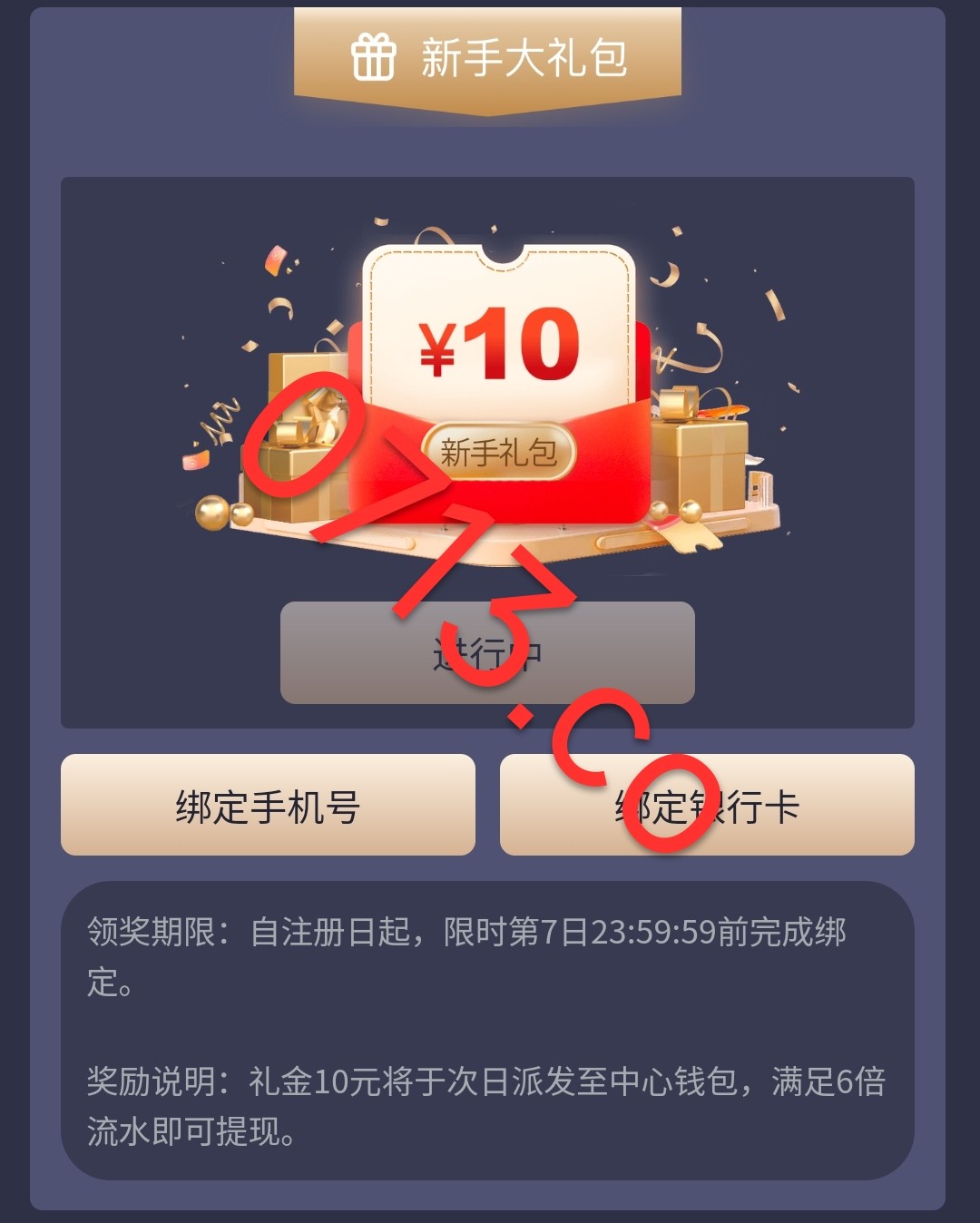 新用户注册绑定手机号银行卡去优惠新人首存活动自助领取10彩6倍流水提现 彩金好像隔天才到