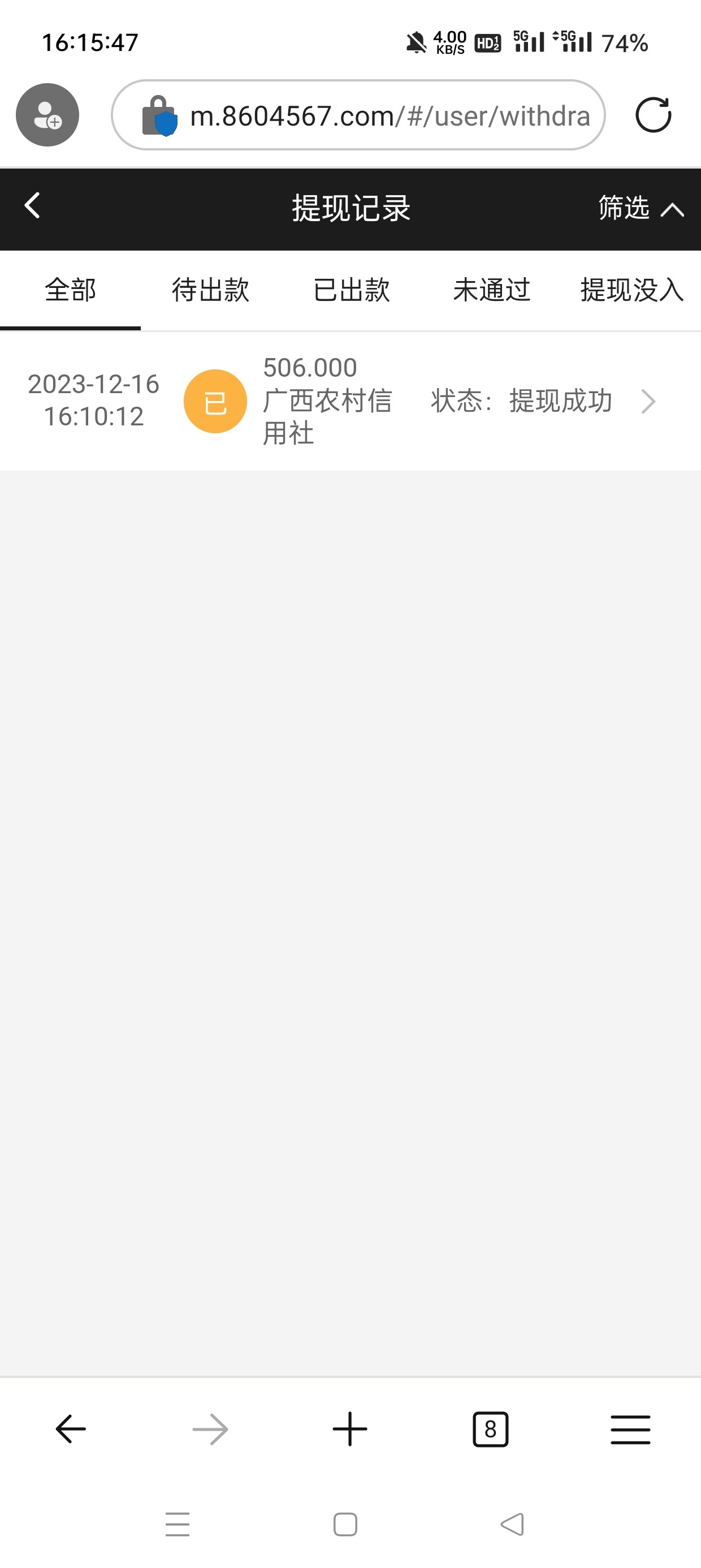 提现到了500,5分钟到