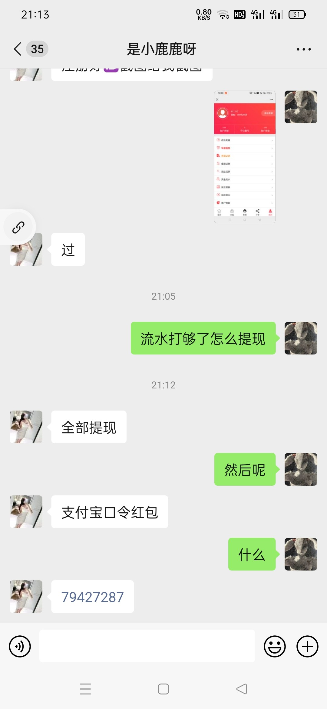 两个微信都打出来了,昨天活动没改8倍流水就能提58,现在已经改成按流水档次来给,我运气比较好,50一把连中13期,总共打到最高的1288流水,下88