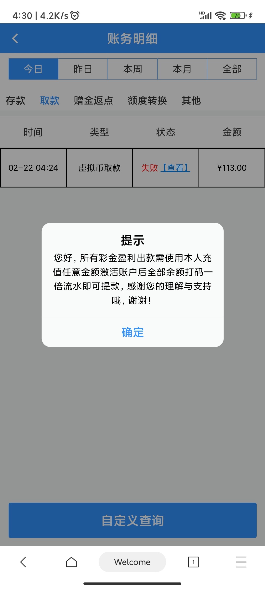 希望到账