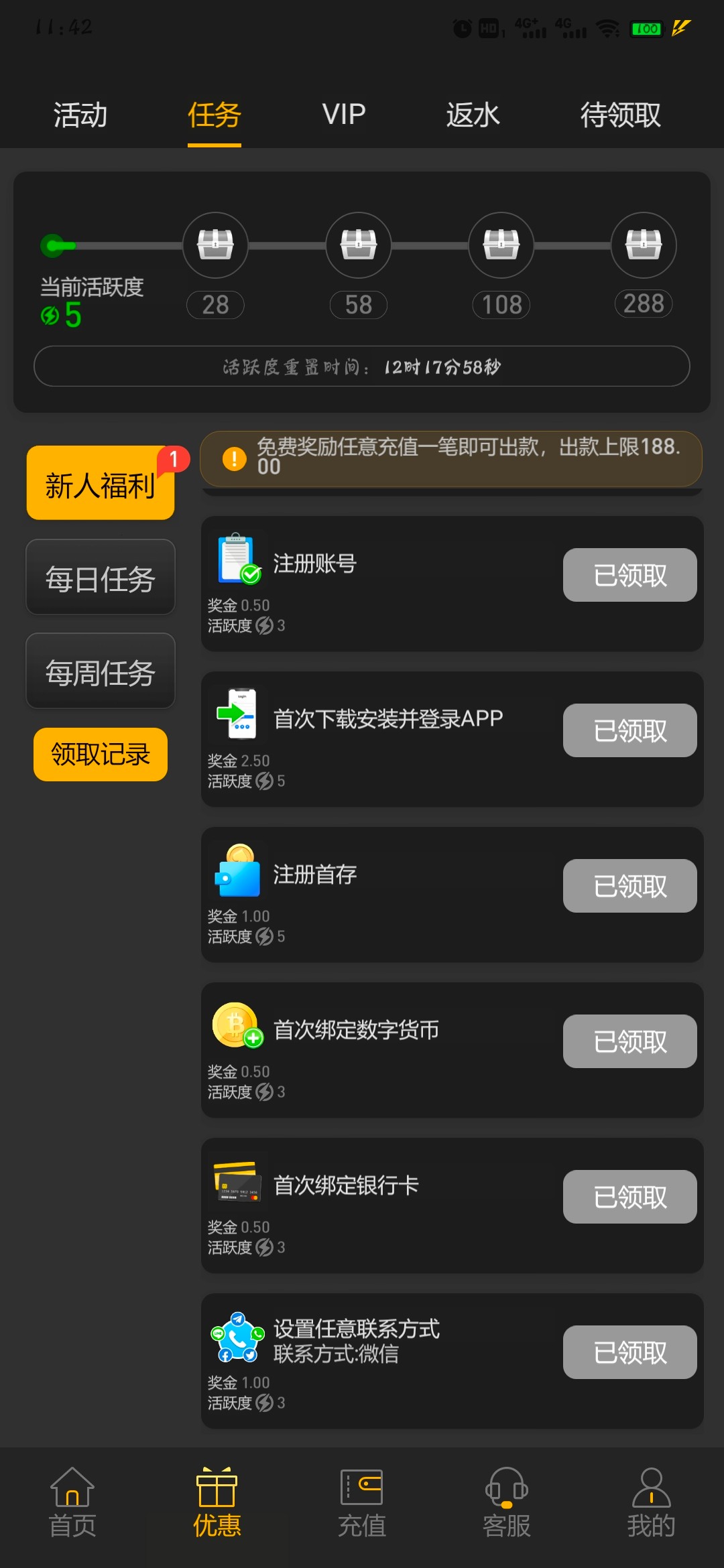 白嫖几块钱,最大出款188,需要充值一笔。