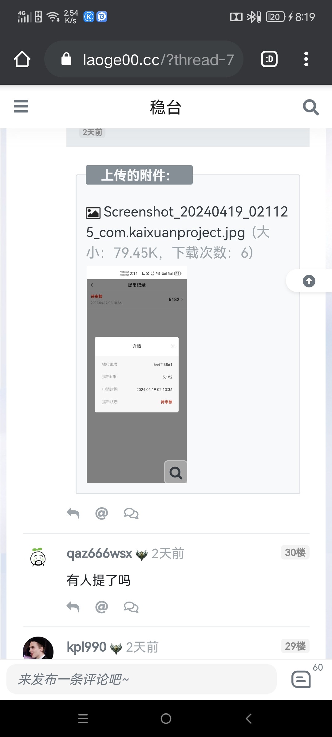 是老哥那边发的,发了有几天了,我看评论有部分人是白嫖的,他最低就是500块,这玩意儿能过就过吧,过不了删掉没关系的