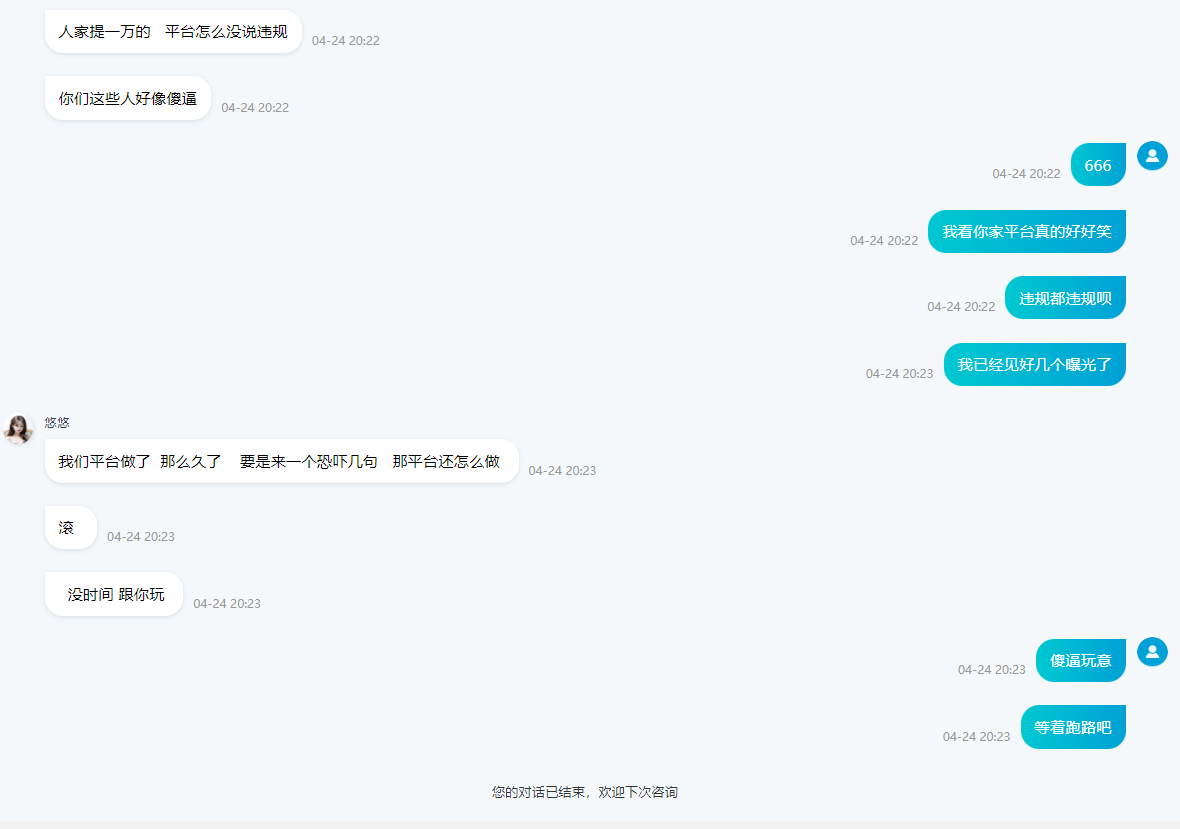 客服全程骂人毫无素质,老哥们这样的台子谁敢玩