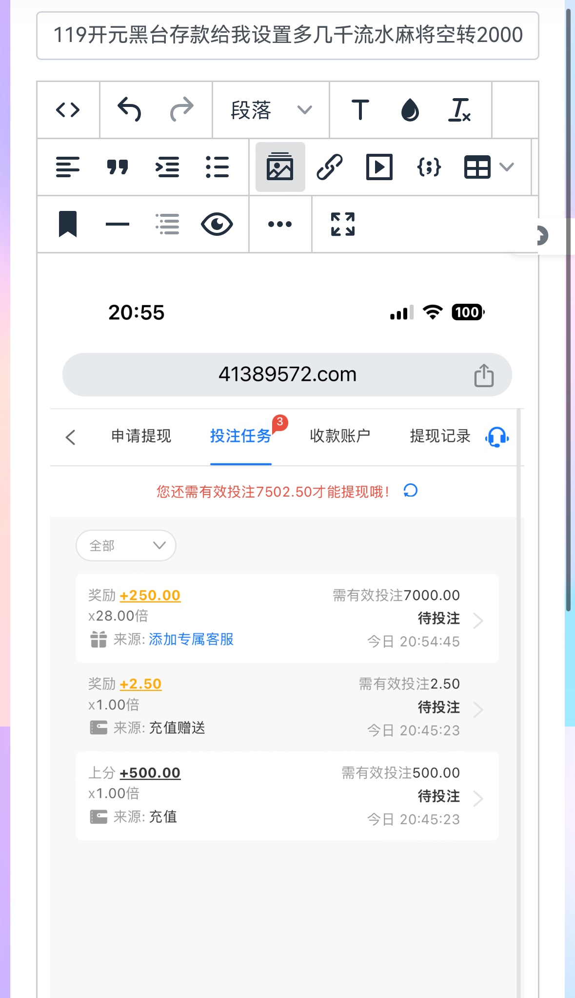 论坛担保说活动6倍流水 一存款设置了28倍流水