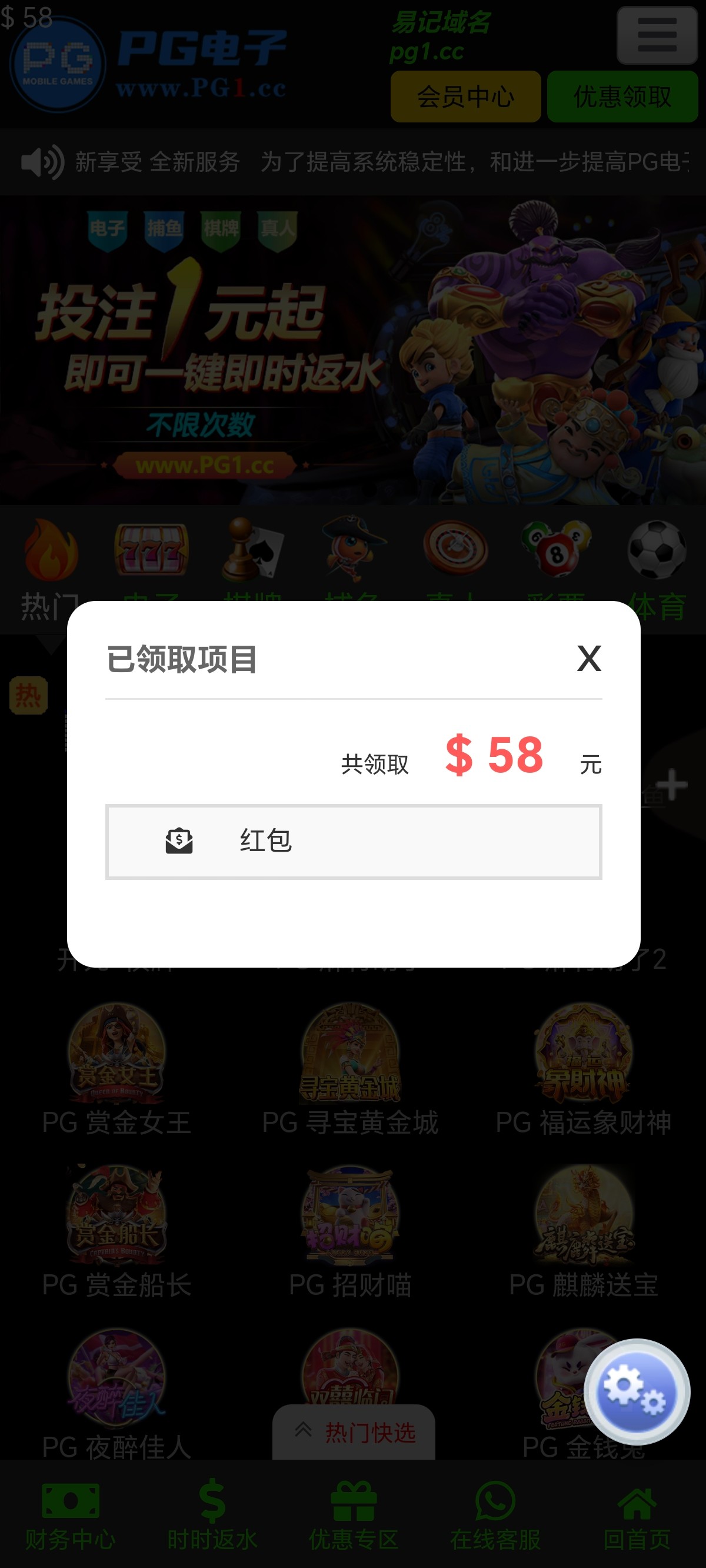 回馈的58,打到180了,不知道提款要不要充值