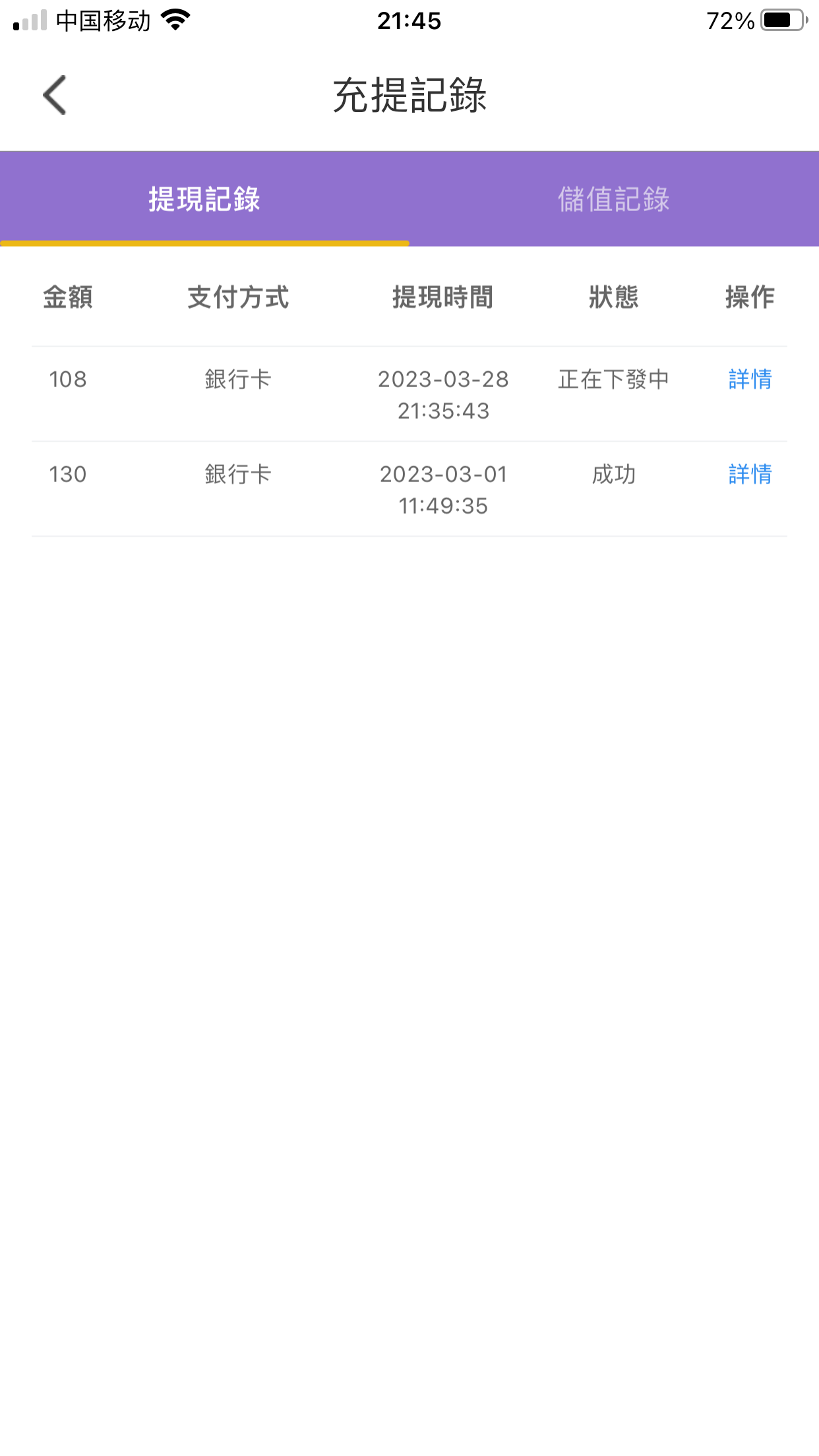 提了100等到账