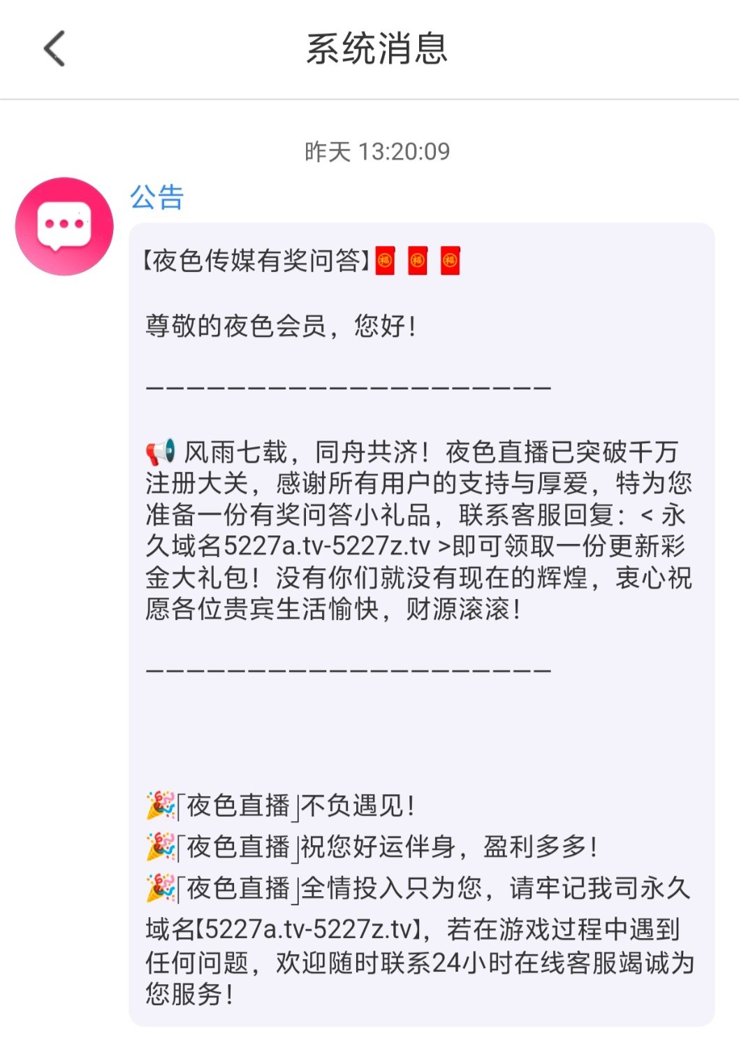 联系客服发送永久域名就能领