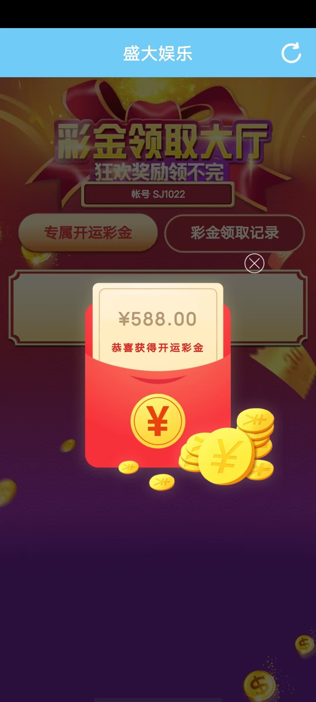 有账户的兄弟可以上号查看下,没充值的也有机会领到,都登陆账户-点我的-彩金中心领取!