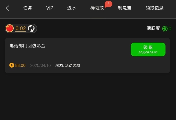 有号的兄弟可以上号看看有没有回访彩金不用联系客服申请,上号就可以看到了