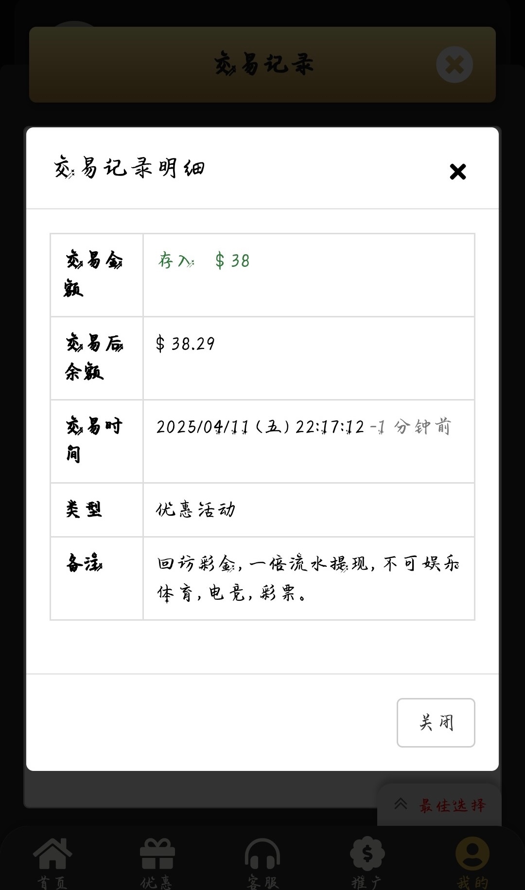 有号的兄弟可以上号看看,有的话会直接弹出来,一倍流水