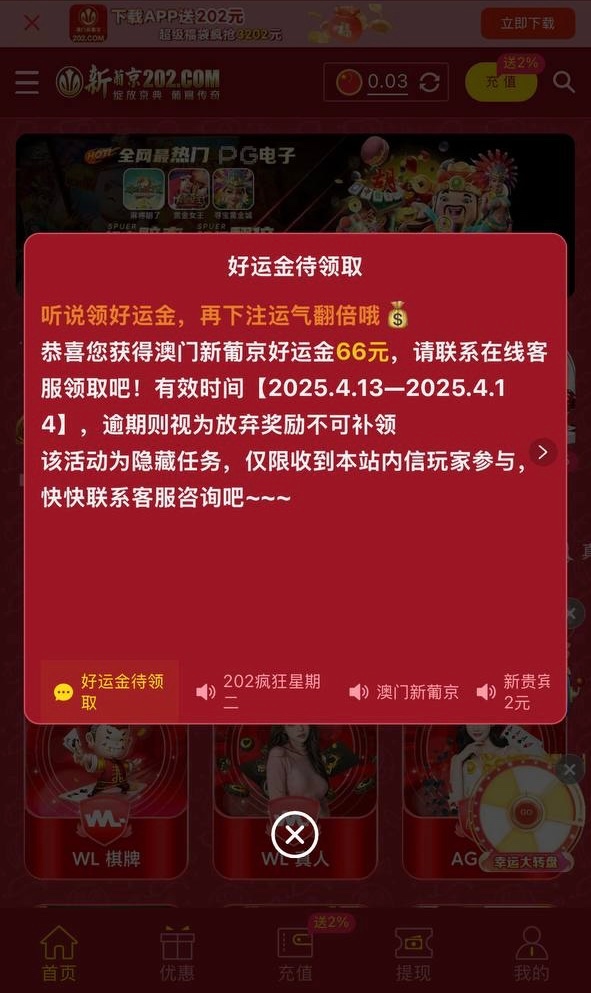 2025.13-4.14回馈彩金老用户有号上号登录 看站内信是否收到邮件,收到联系在线客服领取16彩金,彩金限制领到以后询问客服!