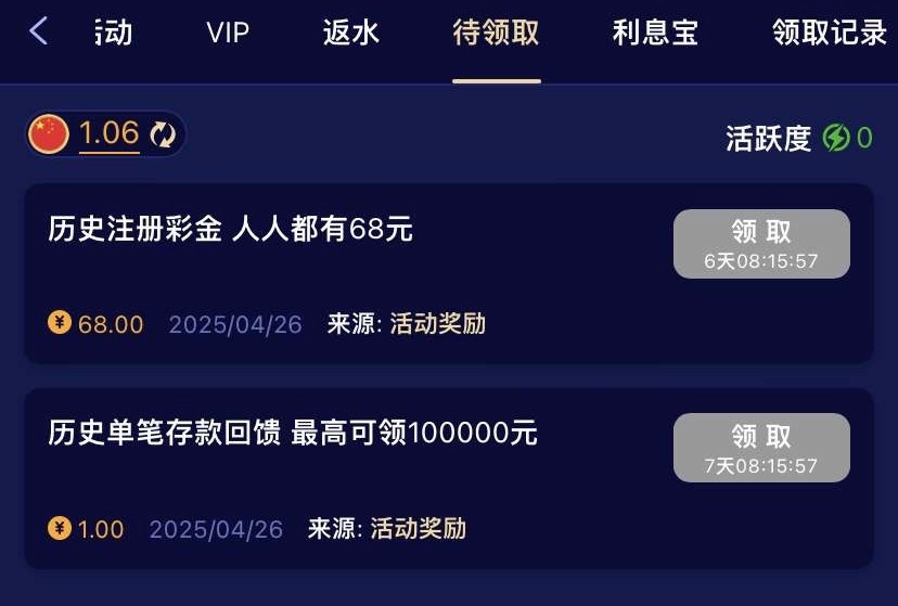 在昨天之前注册充值过的兄弟可以上号领彩金