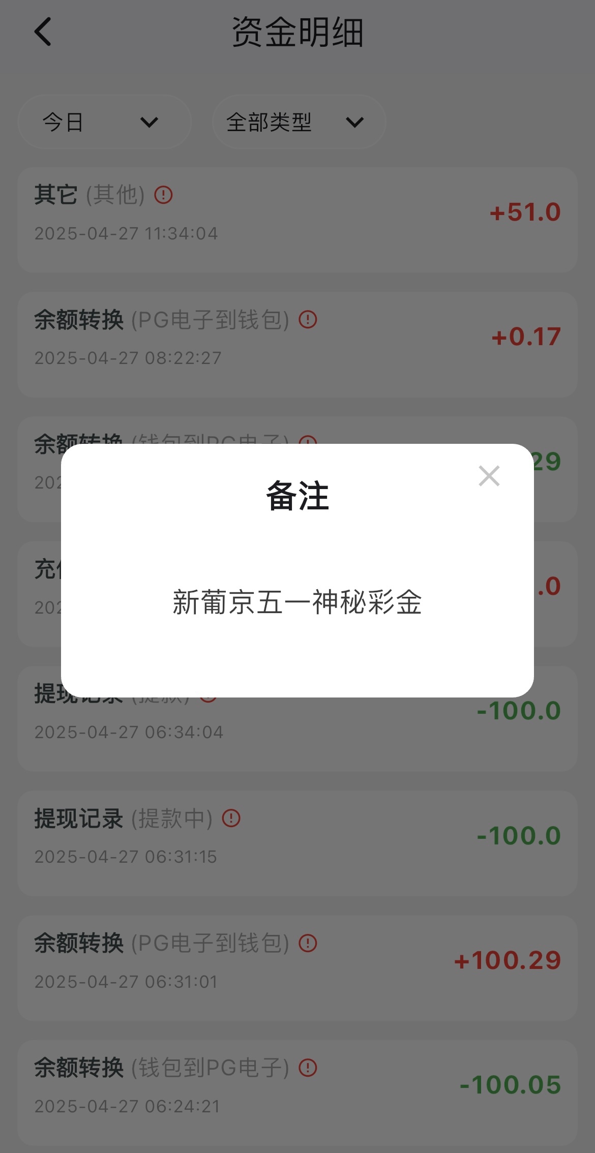 出款情况:自测(