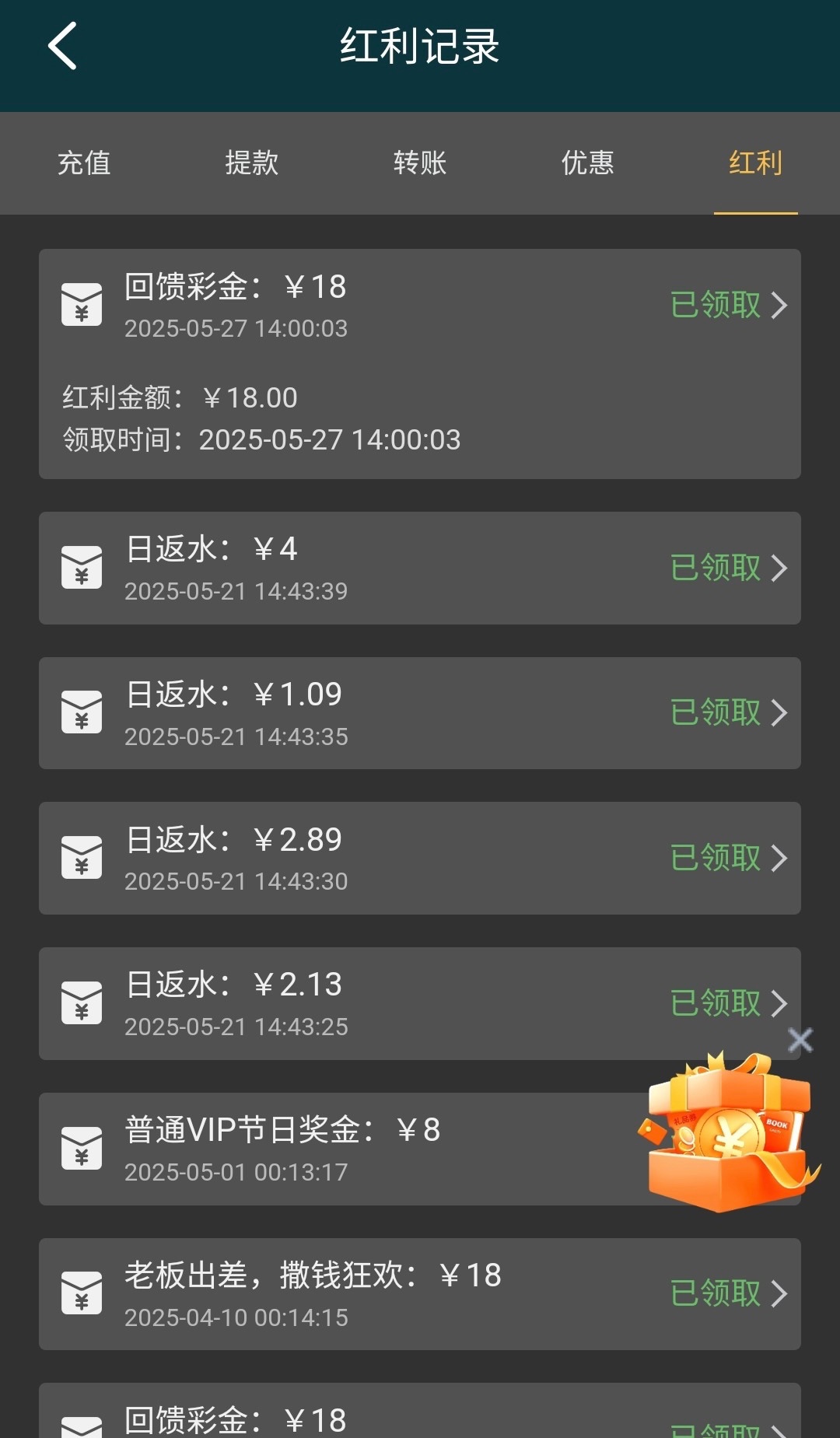 有号的登录看看直接在余额里