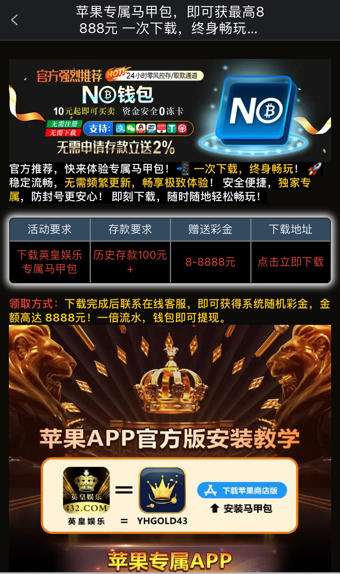 仅限苹果用户,历史存款过100以上的兄弟可以去领一下彩金