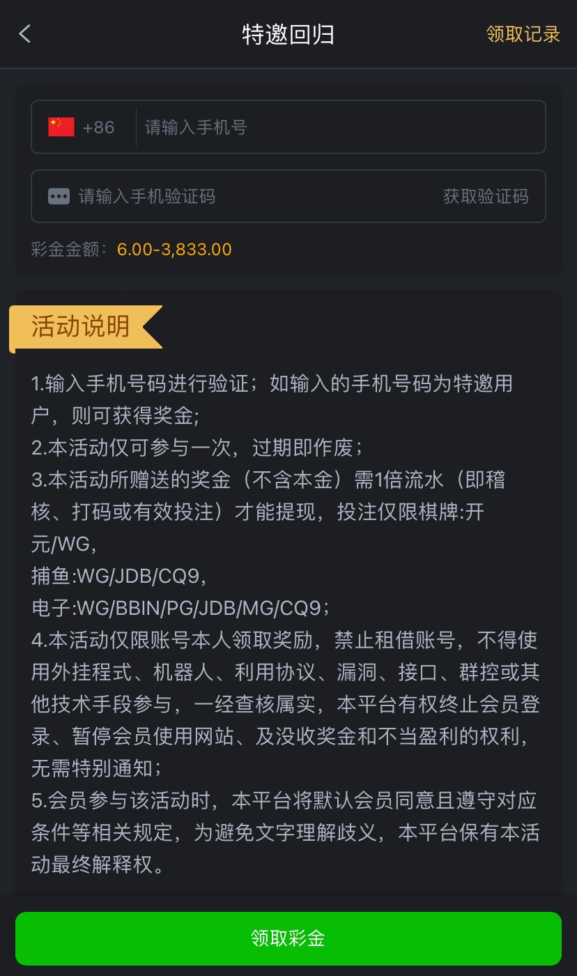 感兴趣碰瓷的兄弟可以试试,彩金一倍流水