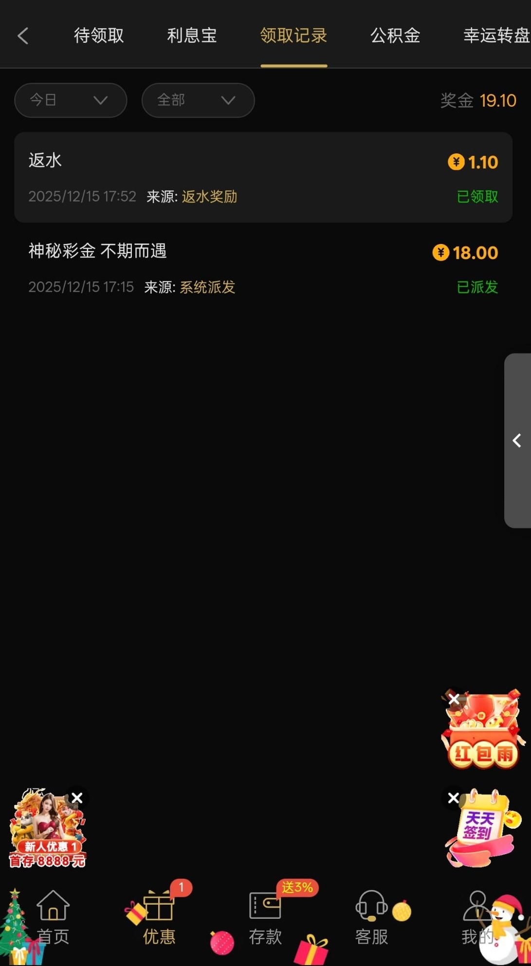 有号的兄弟可以登入上看看自己优惠里有没有得领取