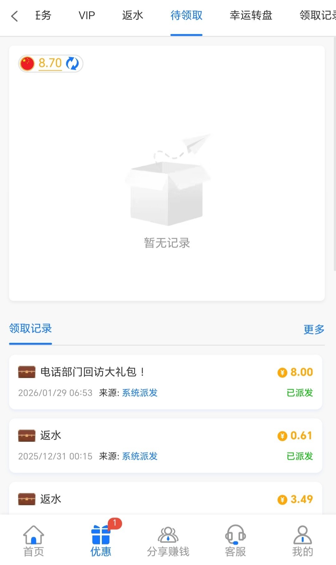 有号的兄弟可以去登入上看一下优惠里有没有