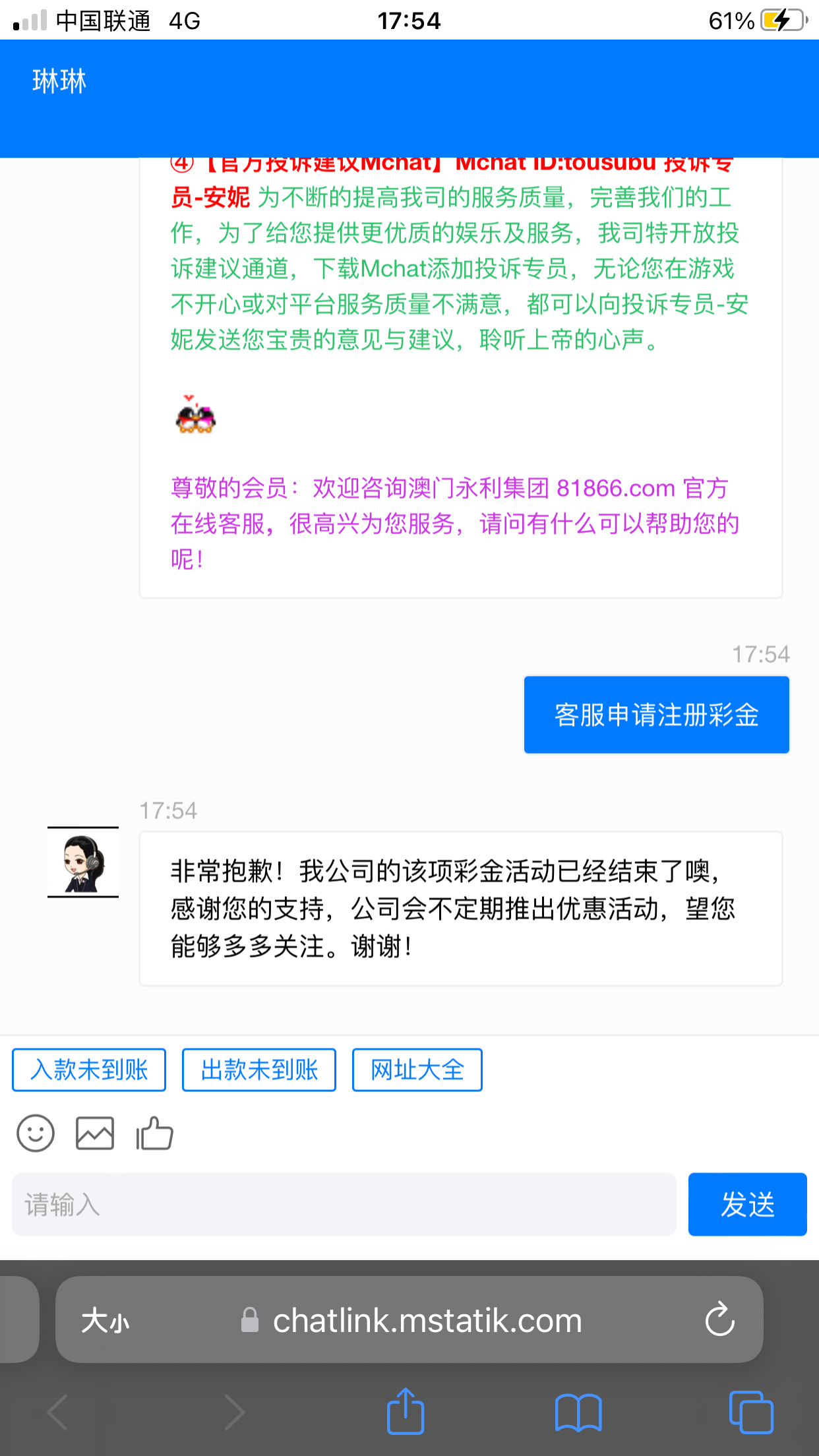 非常抱歉!我公司的该项彩金活动已经结束了噢,感谢您的支持,公司会不定期推出优惠活动,望您能够多多关注。谢谢
