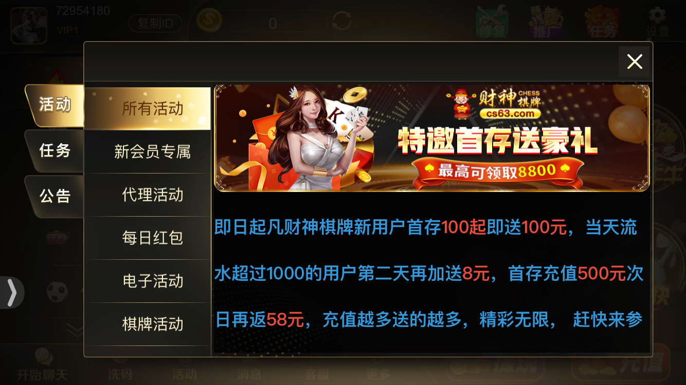 财神棋牌100➕100能玩吗