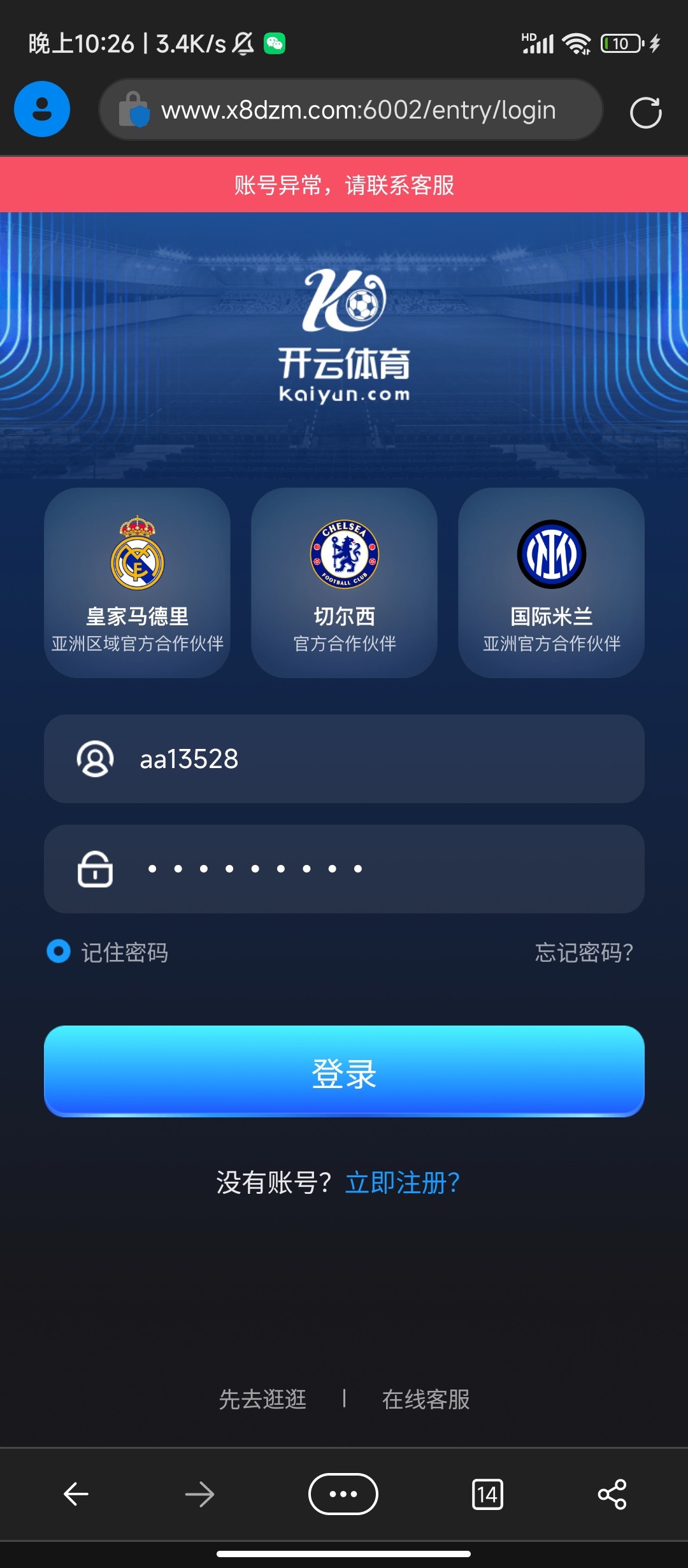 今天开云打电话来 机器人播报的说送88 说忘记密码联系客服 但我记得我没注册过 然后这是刚刚注册的也不行 不给登 重新注册就说网络异常