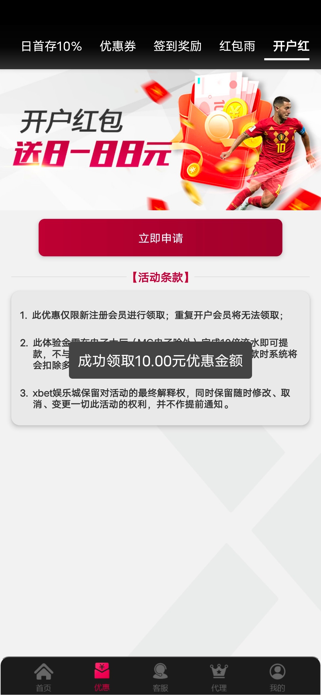 注册绑卡绑手机号优惠开户红包自助秒送10元