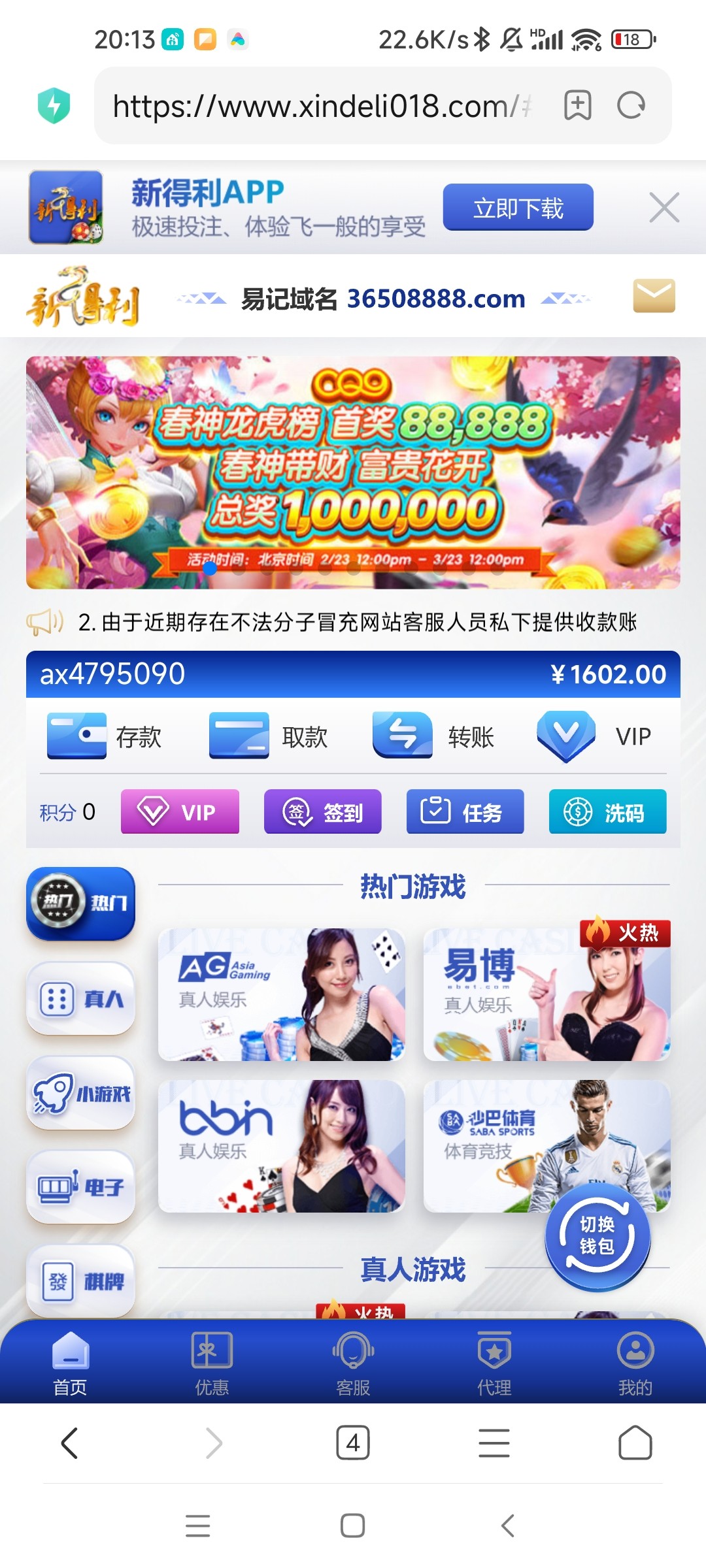 zx479509000 新得利是假的,不然提,我赢了1900,提1000被拒,余额也清零了