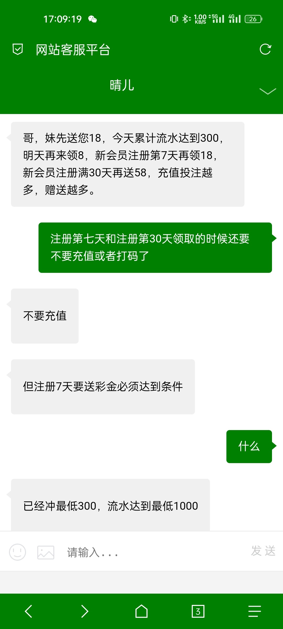 这两天疯狂发短信,问客服说100+100一杯水,不限制游戏,存完之后只给了18,看图