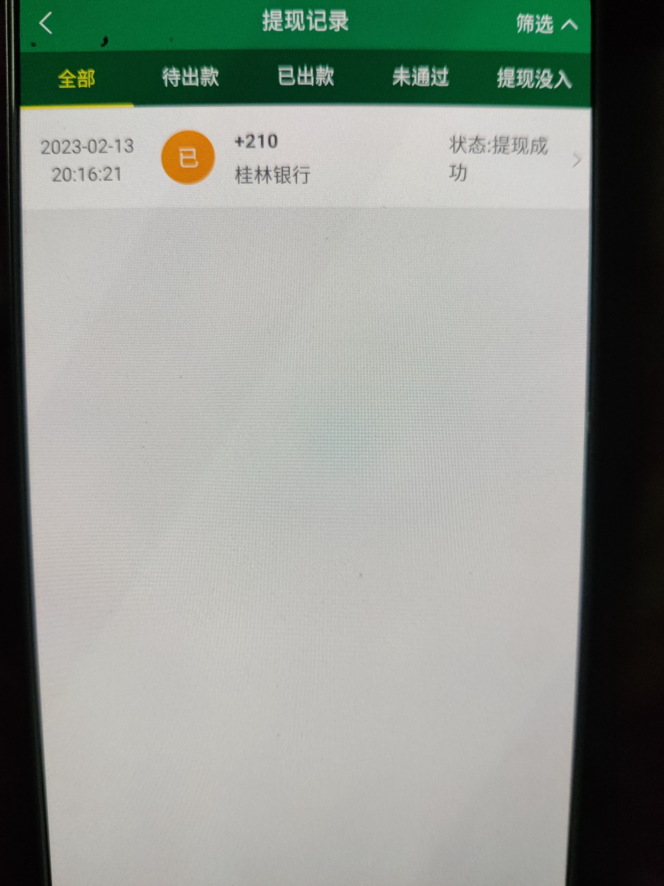 210出款成功,2个号 一个上180挂了,刚才另外一个直接上了210,到账