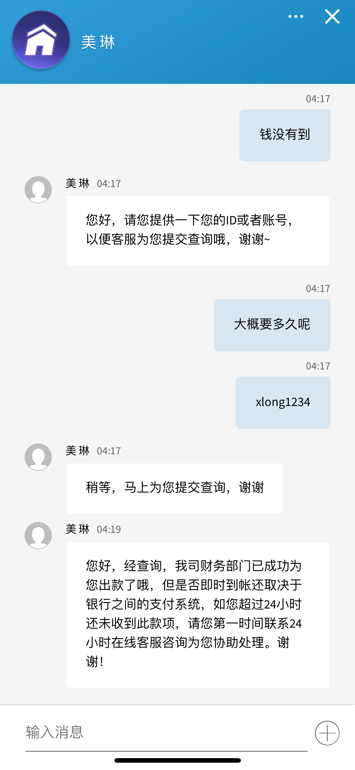 3434好像空汇了,处理成功一个小时都没有到账,说24小时后不到账联系