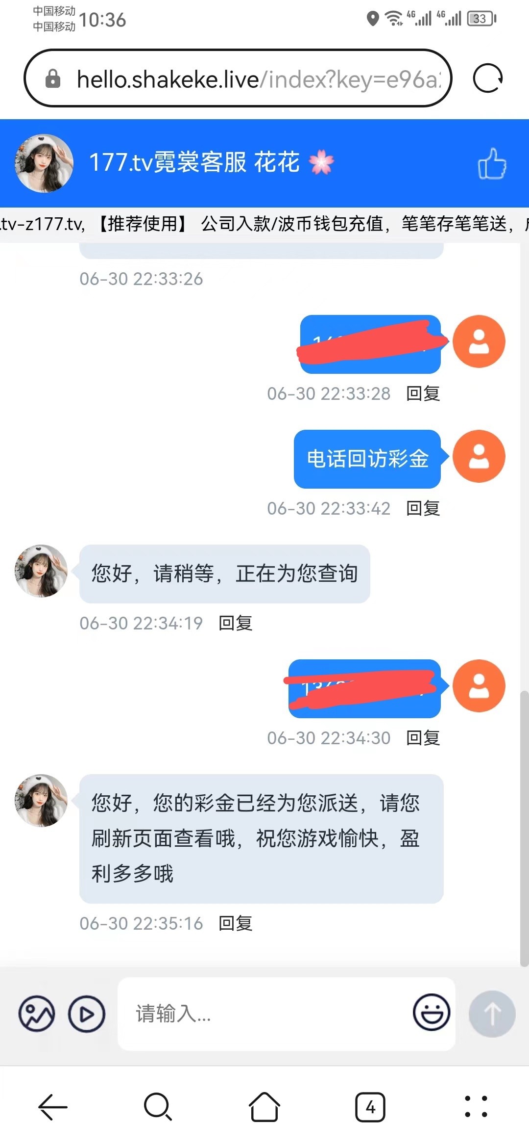 妈的 我接到电话了 还是让我充值